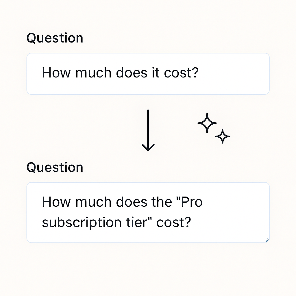 Contextualised Questions let your chatbot automatically interpret vague queries like “How much does it cost?” by understanding page context, so you no longer need to manually clarify.