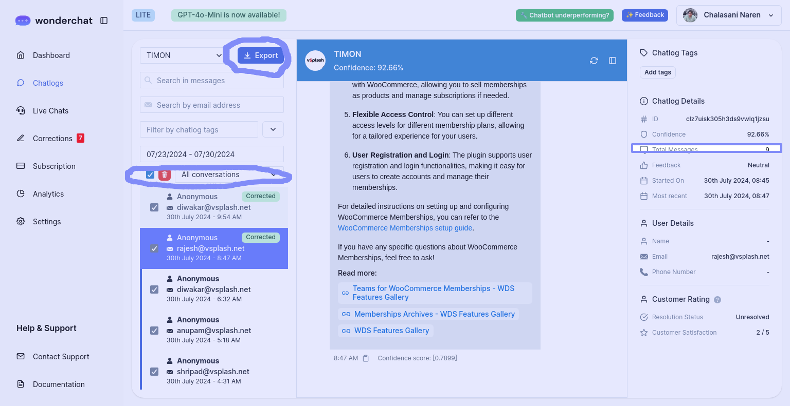 Add the total messages count in the report for each conversation