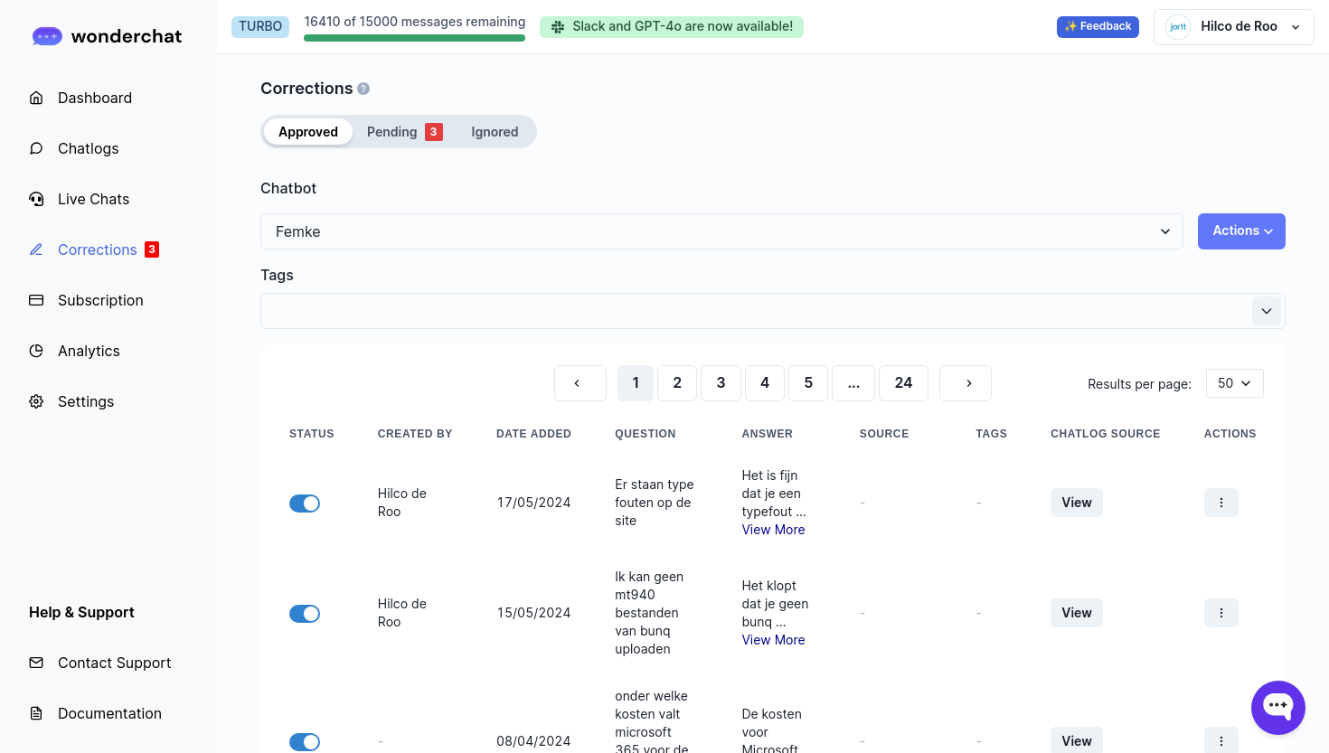 Hi, I like to have the Approved Corrections in order of Newest on top. When I make a correction and like to chance it (most of the times happens within a few minutes) it is now lost in all corrections.