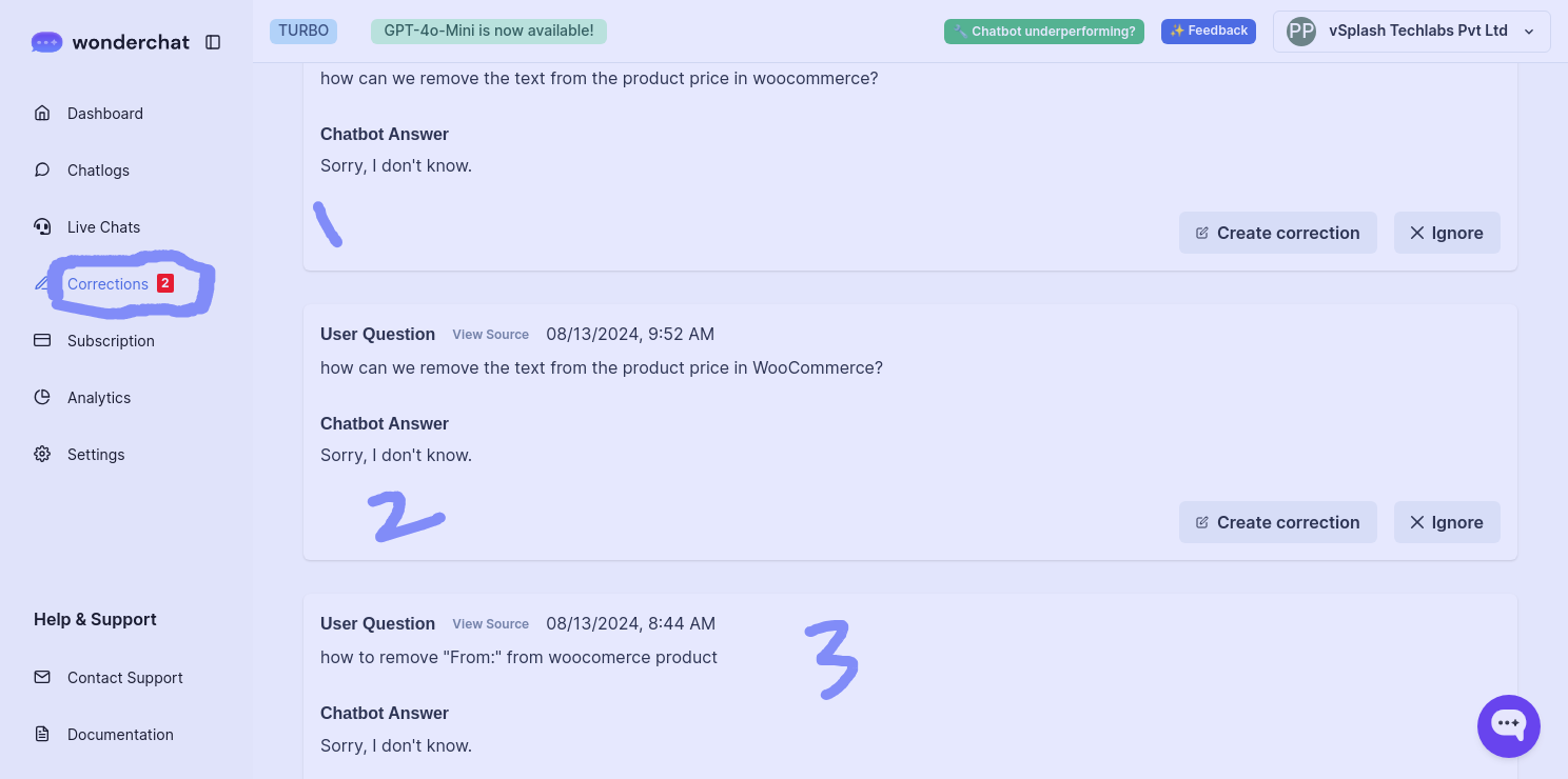 The count of corrections visible in the left side bar is not accurate with the actual corrections visible