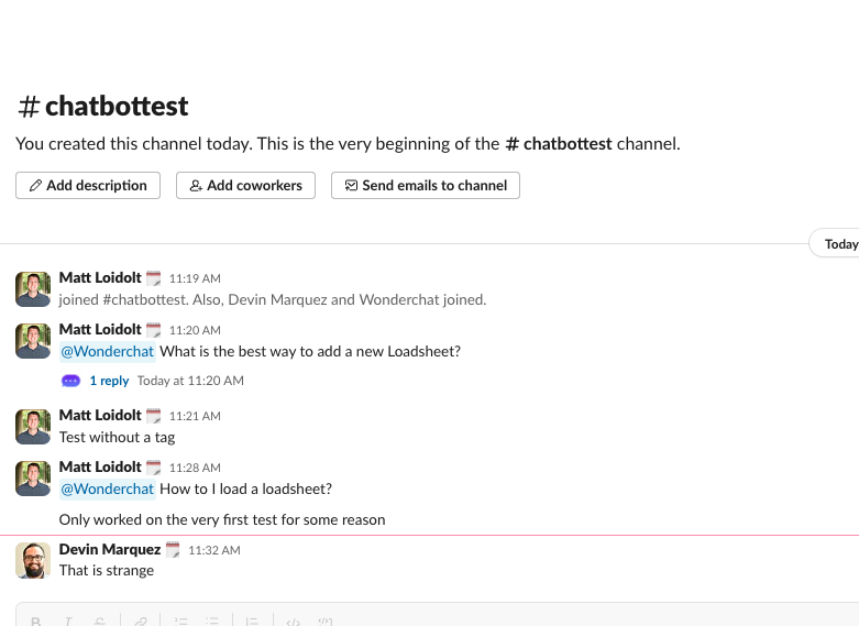 We tested in several other channels and did not get any further responses in those either, only the 1 response in the first channel it was added to.