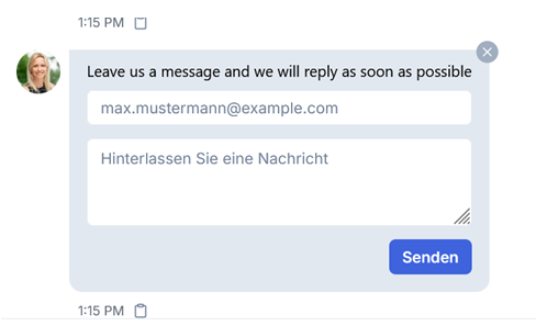 When the conversation with the chatbot reaches the point where the user can send a message then a form appears. The header of that form is not translated to German.