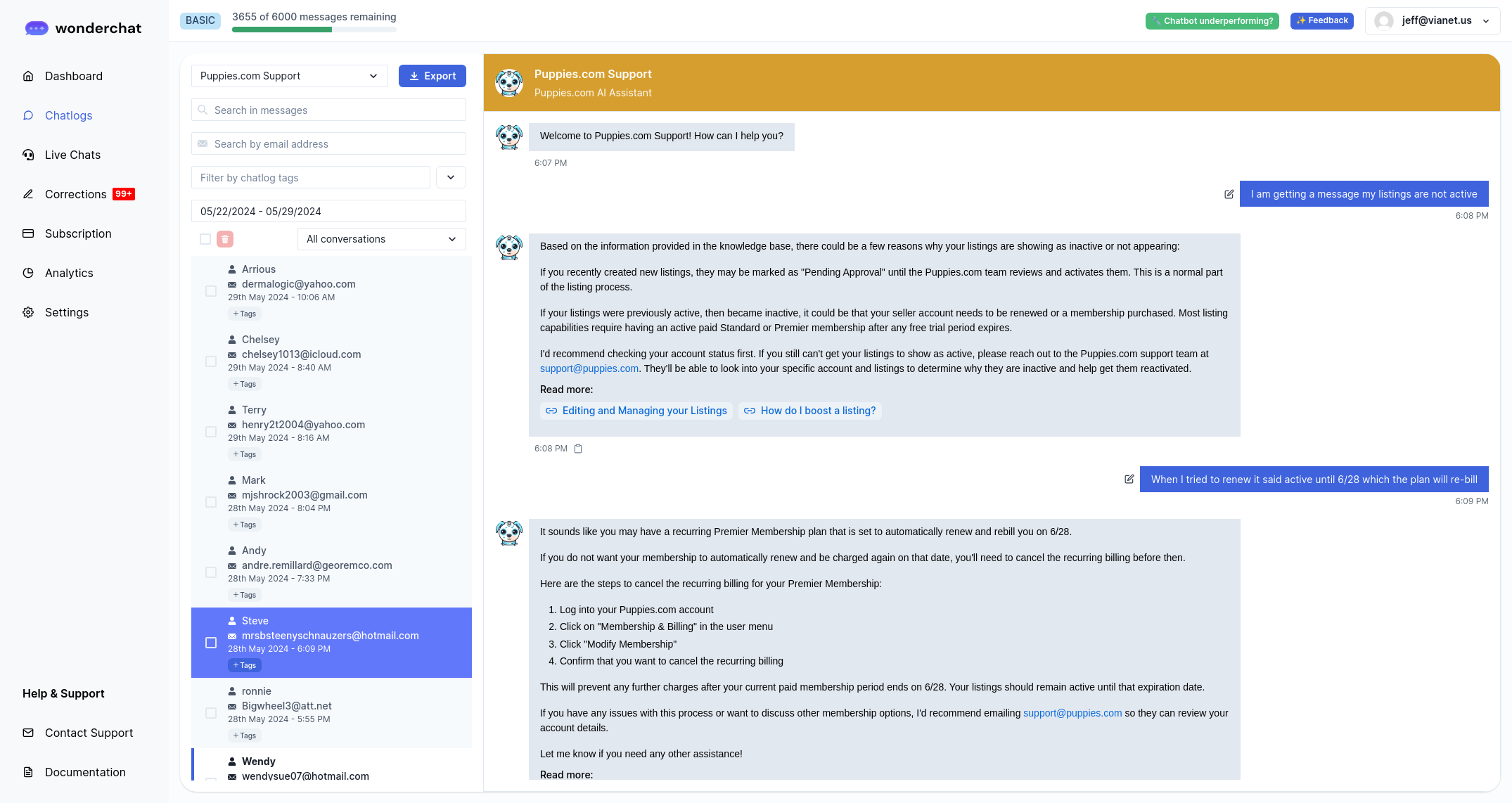 After a user sends the chat message to customer support, the chatbot stops responding to any new messages from the user. It should either continue responding or at least net the user know they should open a new chat to continue chatting.